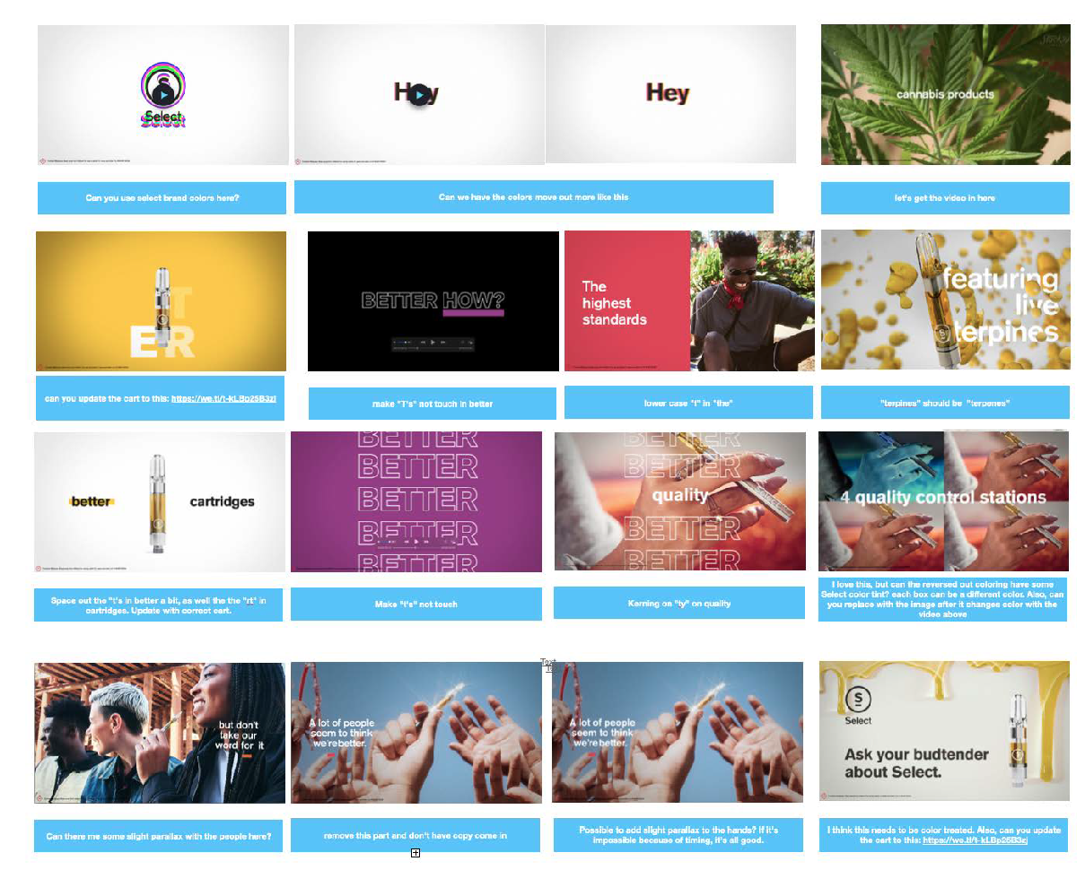 Collaborated closely with a copywriter to conceptualize and storyboard an engaging sizzle reel for Select oil cartridges. I sourced compelling footage, repurposed existing assets creatively, and coordinated with voice talent to establish the perfect tone. Worked hands-on with our motion designer, providing detailed direction, examples, and references to ensure seamless transitions and dynamic motion. Through resourceful use of motion graphics and thoughtful oversight, we delivered a polished, high-impact reel despite budget constraints.